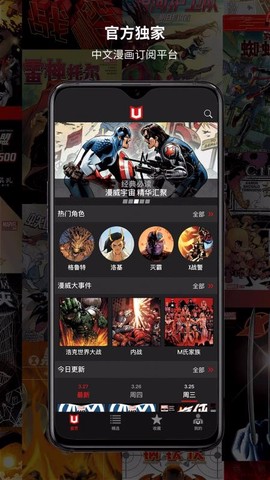 2、首页设计太懂漫迷了——今日更新、大事件时间线、角色专栏三大板块,就像美队盾牌一样布局分明。