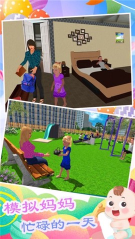 双胞胎模拟生活是一款以家庭育儿为核心的虚拟现实模拟游戏。该软件通过高度仿真的交互设计,让玩家沉浸式体验双胞胎母亲的日常生活场景,从婴幼儿照料到家庭事务管理,全面还原育儿过程中的细节与挑战。