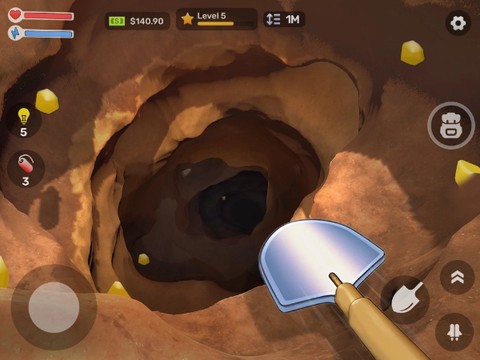 1、升级系统简直让人上瘾。刚开始你只有把破铁锹,但随着不断挖到金矿和宝石,很快就能换上钻石钻头。相信我,看着自己的装备从生锈铁铲变成高科技挖掘机,那种成就感绝了!