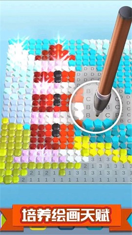 2、在这个像素艺术的世界中,每一个你将要涂色的像素旁边都标有相应的数字,只需按照数字进行涂色即可。