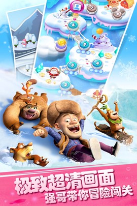 【超萌装扮+特色技能】游戏为角色设计了多款趣味装扮与独特技能系统。例如,熊大、熊二可换装为麦克·杰克熊大、飞行员等形象,并运用充能炮、人工降雪、熊卷风等技能进行战斗,极大丰富了游戏的策略性与视觉表现。