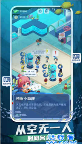 来摸鱼啊是一款以海洋生态为主题的休闲放置类手游,玩家在游戏中将扮演水族馆经营者,通过策略性布局与沉浸式互动,构建独具特色的水下乐园。游戏采用低门槛操作与高自由度管理相结合的模式,辅以治愈系美术风格,为玩家提供兼具趣味性与放松感的数字娱乐体验。
