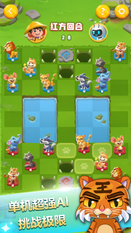 斗兽棋最新版是一款策略性极强的对战棋类游戏,玩家操控多种野兽棋子,依据各自的行走规则和策略击败对手。游戏规则简洁明了,策略层次丰富,为玩家打造了一个既能放松身心又能锻炼思维的平台。无论是单人挑战计算机还是与朋友进行双人对战,都能获得引人入胜的游戏体验。