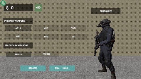 2. 更衣室或军需处:在这里查看或更换装备。如果你选择单人游戏,还能调整AI队员的装备。