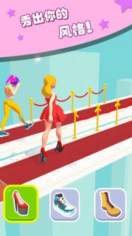 2. 赛道中会随机出现不同款式的鞋履,玩家需要精准操控角色进行收集,以丰富可更换的鞋款库存。