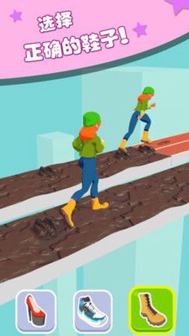 2. 游戏过程中,玩家需操控角色收集散落在赛道上的各类鞋履,并及时为角色更换,以应对不同地形。