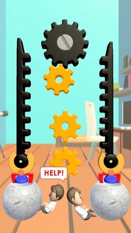 告诉你个绝对上头的宝藏游戏!画面里那个可怜巴巴被石球压住的小人儿,正眼巴巴等着你去救他呢。别被那些咔咔转动的齿轮吓到,这玩意儿玩起来比嗑瓜子还停不下来——你得像个机械大师一样,把那些咬合的齿轮组装成精妙的起重系统,看着石球一寸寸抬起的成就感,简直比夏天灌冰可乐还爽!