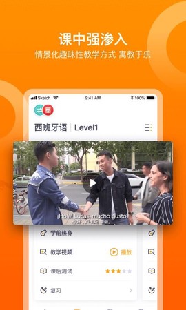 4、每一学习场景均划分为学前热身、教学视频、课后测试与复习四大模块,结构清晰、循序渐进;